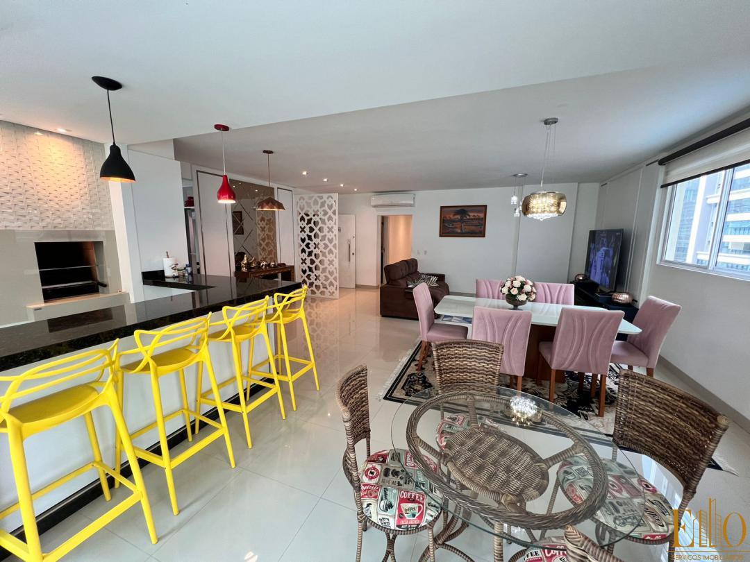 O APARTAMENTO está mobiliado e pronto para morar - 03 Suítes, sendo uma máster com closet - 03 Vagas de garagem - Lavabo -Churrasqueira á carvão - Living - Cozinha - Área de serviço - Tubulação para água quente - Ar condicionado SPLIT AMPLO Apartamento com 149 Metros Privativos.