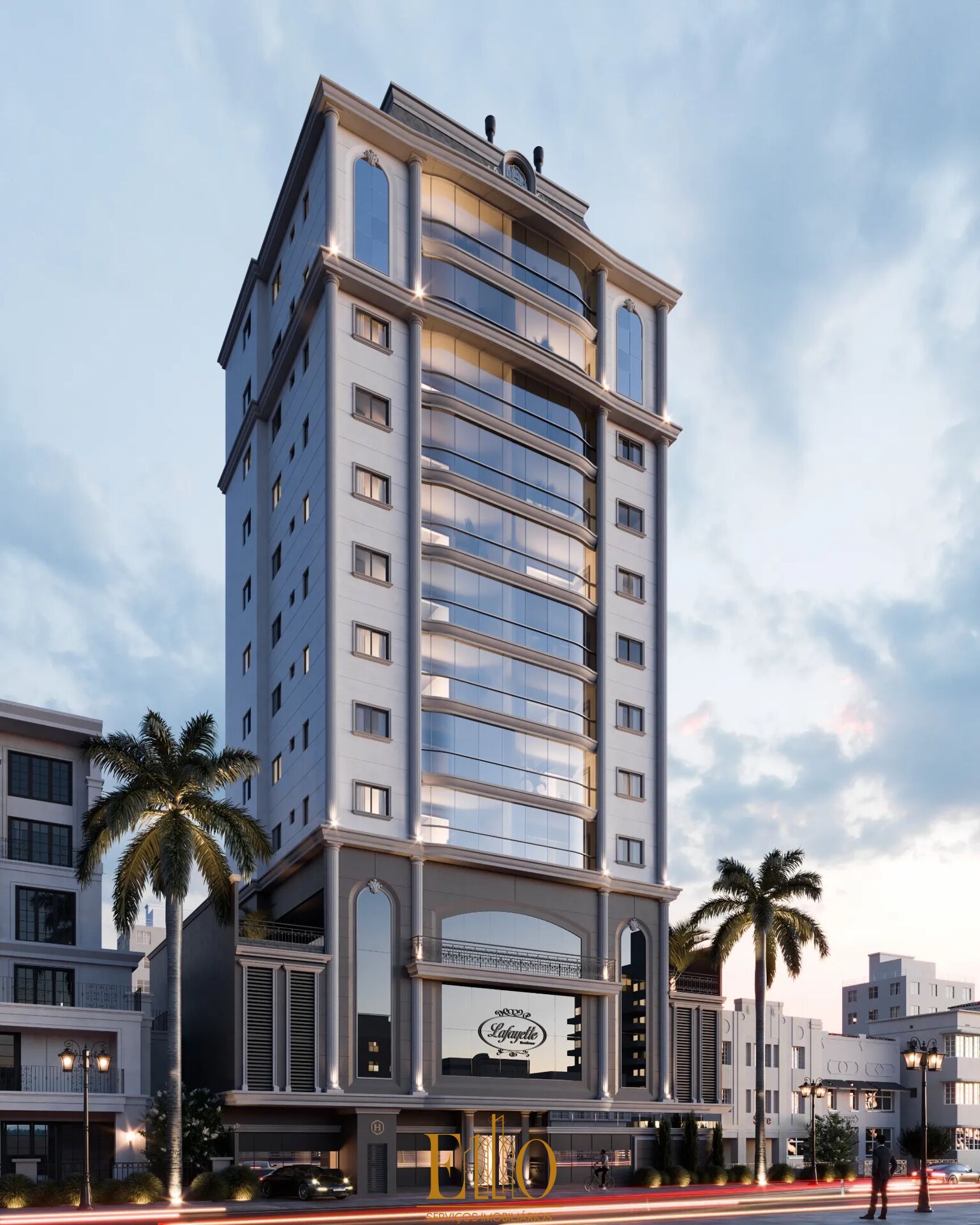 Com uma torre de aproximadamente 43 metros de altura, o Lafayette Residence possui 18 unidades sendo dois apartamentos por andar. O projeto arquitetônico e de interiores tem assinatura do renomado escritório ProDesign, que referenciou a arquitetura neoclássica francesa, padrão da marca H•Empreendimentos.