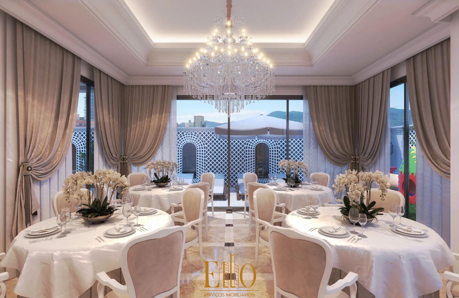 Áreas sociais mobiliadas planejadas e decoradas