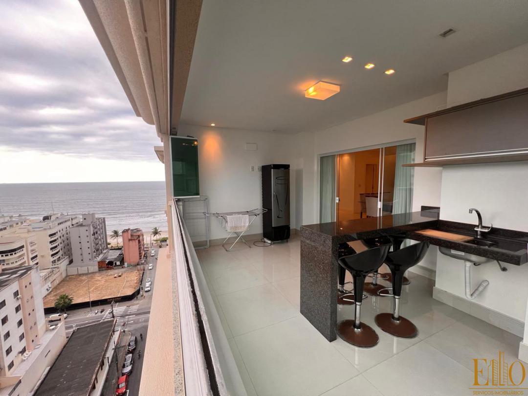 São 4 suítes, sendo 1 master com hidro, 1 Lavabo, Sala de Estar, Sala de Jantar, cozinha, Sacada com churrasqueira a Carvão e Vista para o Mar, Hall de entrada decorado, Mobiliado. com 03 Vagas privativas e 171 Metros privativos.