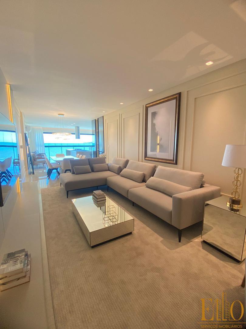 APARTAMENTO: - Frente para o mar - Pronto para morar - Empreendimento entregue - 4 suítes - Sacada c/ churrasqueira a carvão c/ exaustor elétrico - 3 vagas de garagem - Lavabo - Área privativa aproximada: 180,00m² - Área total aproximada: 345,00m² - Living - Cozinha - Área de serviço INFORMAÇÕES COMPLEMENTARES: - Infraestrutura para água quente com acionamento monocomando nos chuveiros - Infraestrutura para ar-condicionado tipo split - Infraestrutura para automação de imagem, iluminação, persiana e som. - Infraestrutura para aspiração central - Banheiros com revestimento das paredes em porcelanato e com bacias monobloco e acionamento dual flush - Infraestrutura para hidromassagem na suíte principal - Janelas das suítes com persianas integradas e acústicas (vidro laminado duplo) - Gerador de energia. m